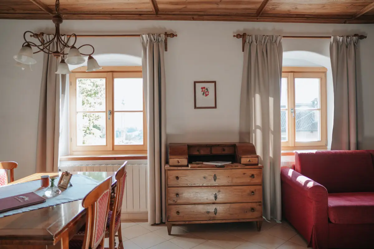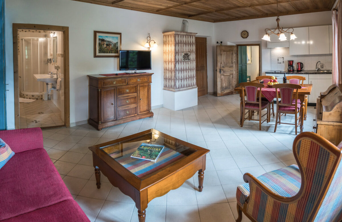 Wohnen bei Margarethe Maultasch, Oswald von Wolkenstein, Andreas Hofer oder Graf von Frankenberg – ein Erlebnis der besonderen Art. Alle Ferienwohnungen sind nach historischen Persönlichkeiten benannt. Bei der Restaurierung der Ferienwohnungen und des Bauernhauses haben wir die gesunde Baubiologie des jahrhundertealten Bauernhofes erhalten und mit dem heutigen Komfort verknüpft. Die Ferienwohnungen sind dementsprechend originell, mit viel Liebe zum Detail, sowie mit viel Holz und alten, zum Teil wertvollen historischen Bauernmöbeln stilvoll ausgestattet. Einfach zum Wohlfühlen!
