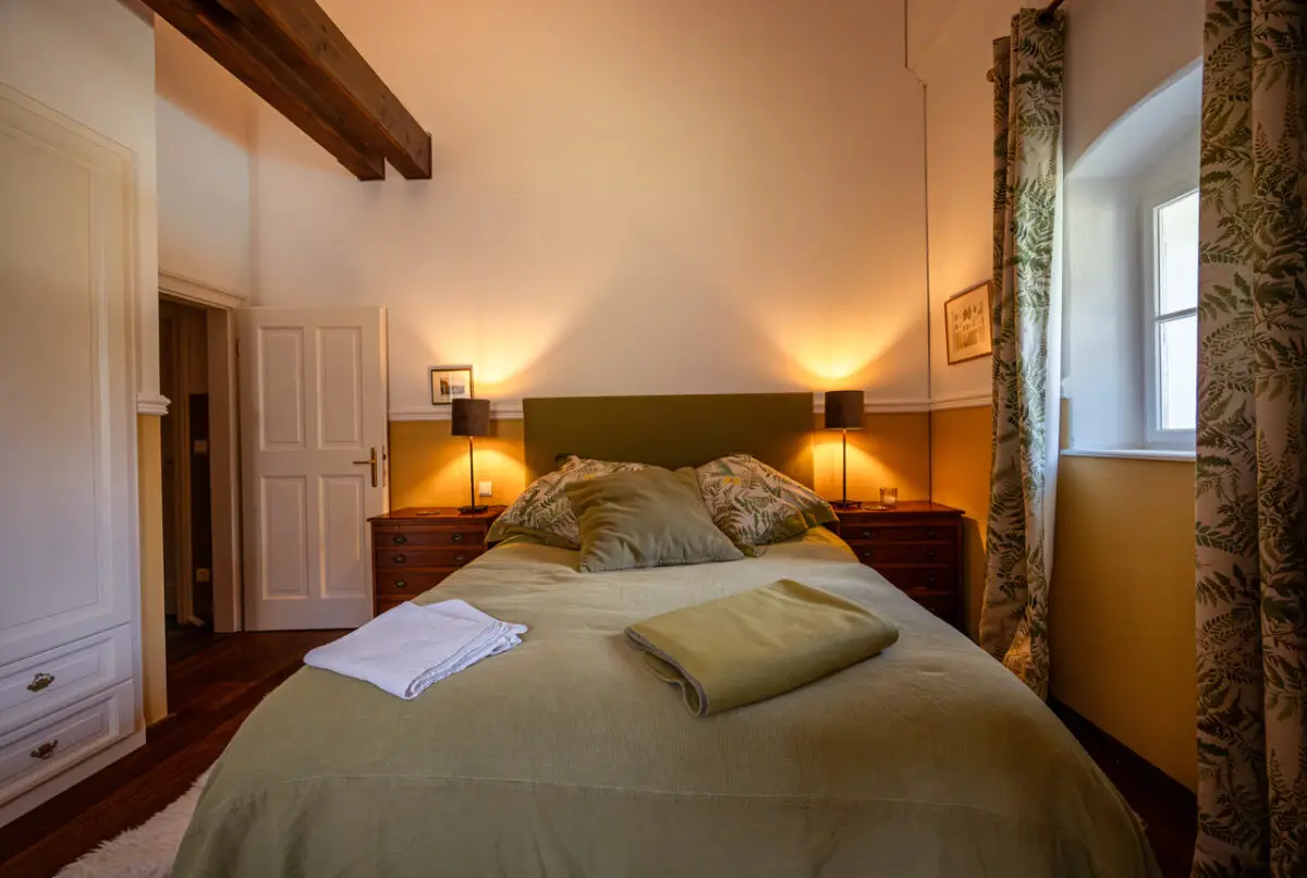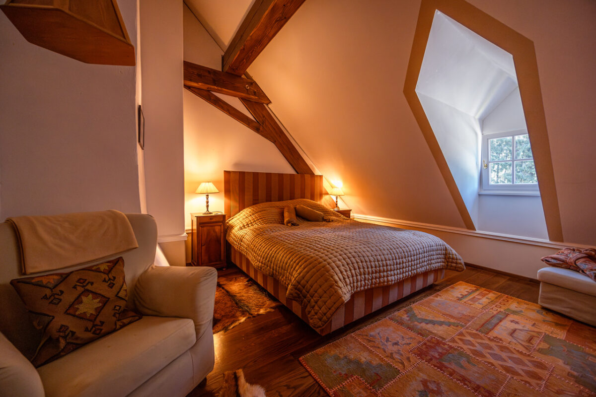 Das Forsthaus kann entweder komplett mit Halbpension für kleine Events sowie Familien- oder Freundesfeiern gebucht werden oder alternativ in Form von vier einzelnen Schlafzimmern mit Frühstück.