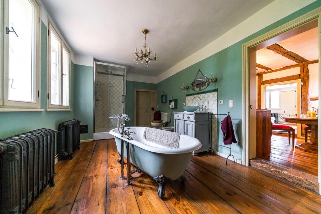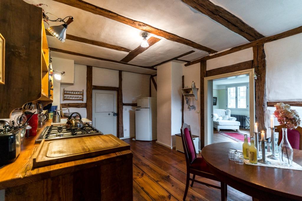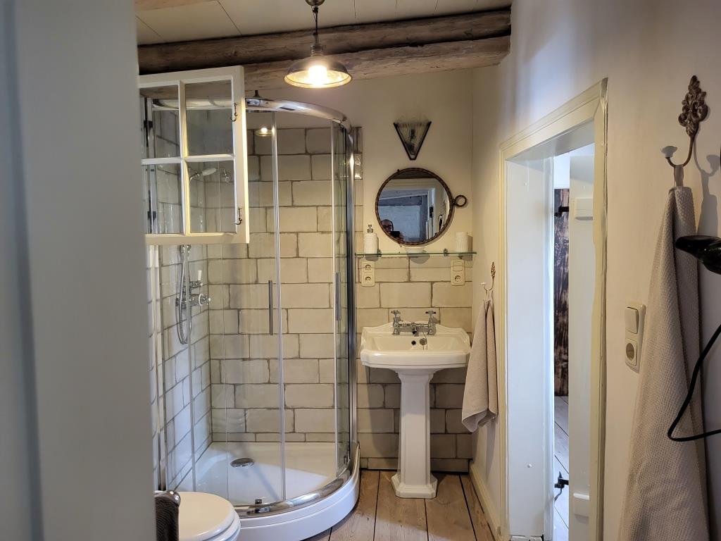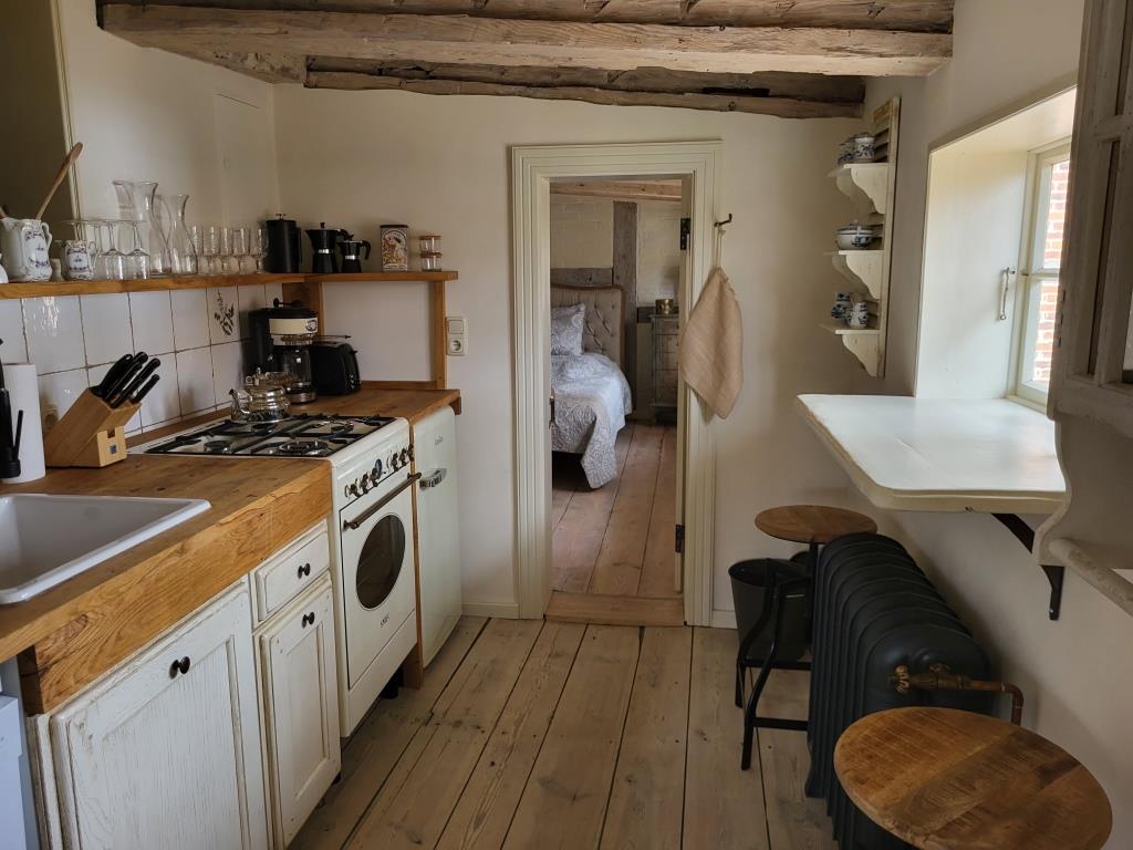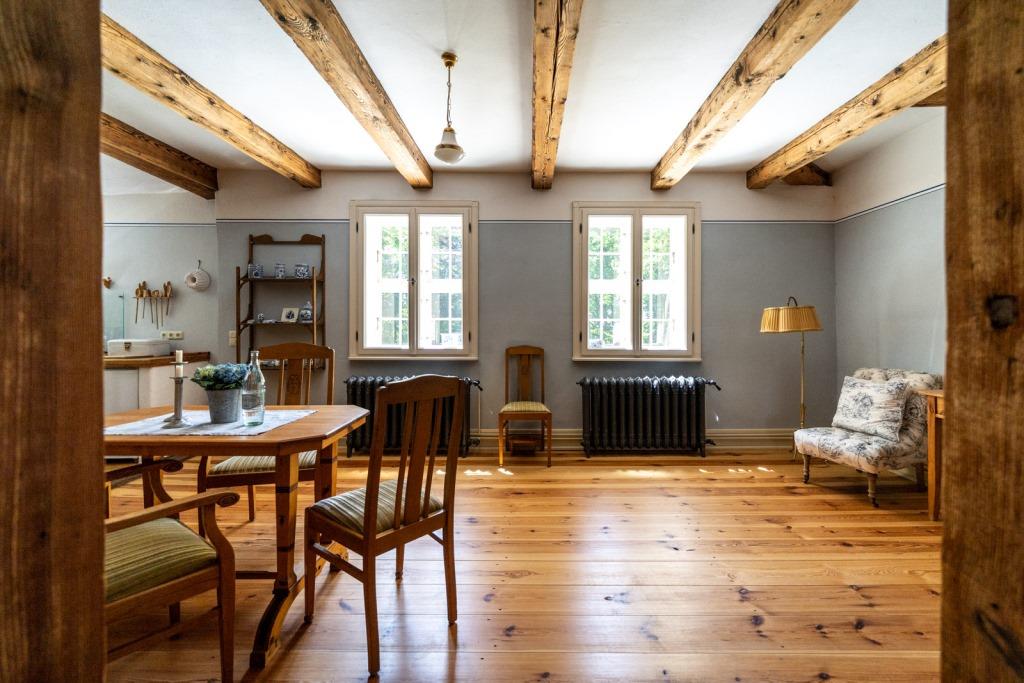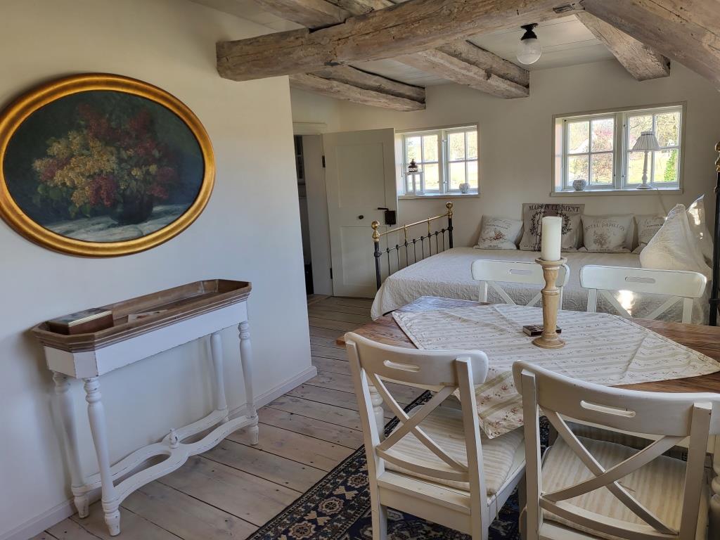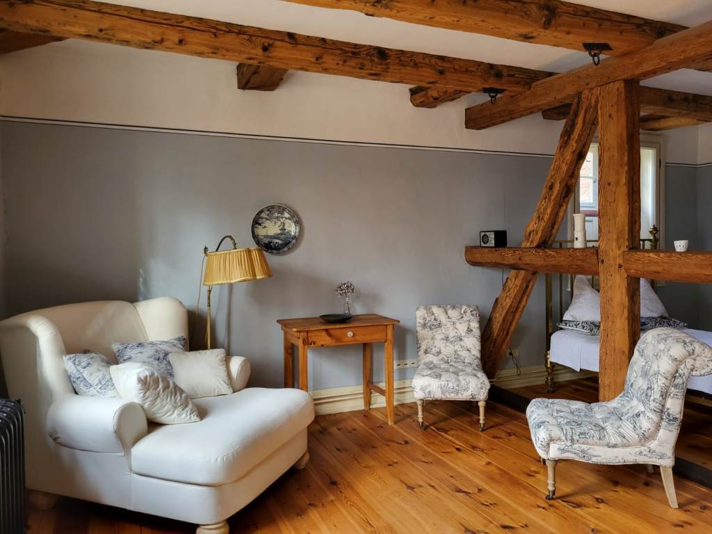 Das barocke Gutshaus wurde um 1700 in Fachwerkbauweise errichtet und 2012-2013 umfassend restauriert. Hierbei wurde besonderer Wert auf die detailgetreue Wiederherstellung der nostalgischen Atmosphäre gelegt, ohne auf den Komfort der heutigen Zeit zu verzichten. Dies spiegelt sich in der Einrichtung der behaglichen Räumlichkeiten mit Gutshausflair wieder, die an alte Zeiten erinnern, als hätte die Gutsherrin gerade das Zimmer verlassen. Für alle Freunde der alten Zeit bietet das Haus zahlreiche Kleinodien zur Entdeckung und zum besinnlichen Genießen an.