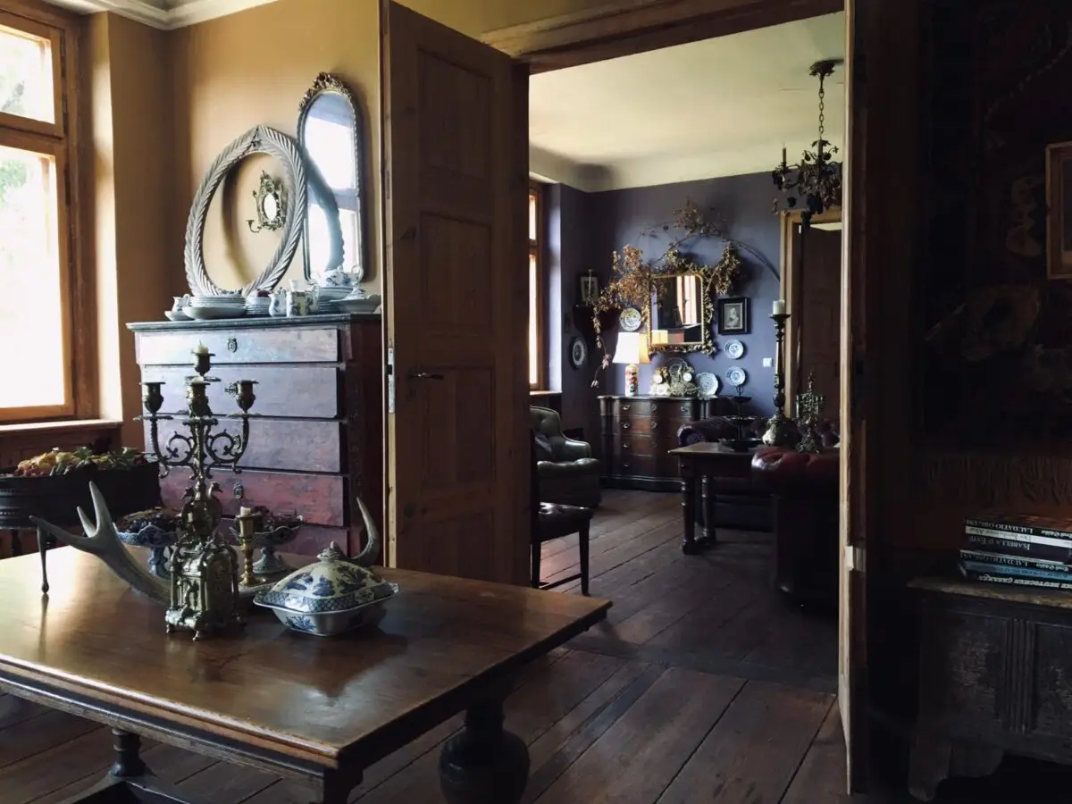 Das Gutshaus bietet insgesamt Platz für 21 Personen, diese verteilen sich auf vier Ferienappartements und drei einfache Doppelzimmer. Die Doppelzimmer können in Verbindung mit Gruppenanfragen gebucht werden. Alle Appartments haben ihren eigenen, ganz unverwechselbaren Charakter, sind stilvoll eingerichtet und detailverliebt dekoriert. Unsere Gäste haben freien Zugang zum dem ehemaligen englischen, jetzt doch eher wilden Park mit Jahrhunderte alten Bäumen. Dort gibt es Sitz-, Liege- und Grillmöglichkeiten.