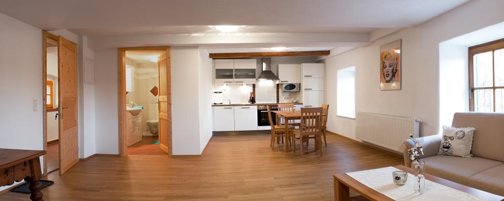 Im Gutshof befinden sich zwei Ferienwohnungen jeweils mit vollständig ausgestatteter Küche, einem Schlafzimmer, Wohn- und Esszimmer mit ausziehbarer Couch, SAT-TV, WLAN, Bad mit Dusche/WC.