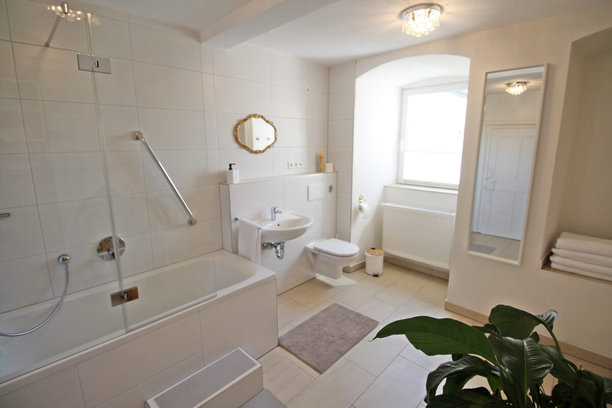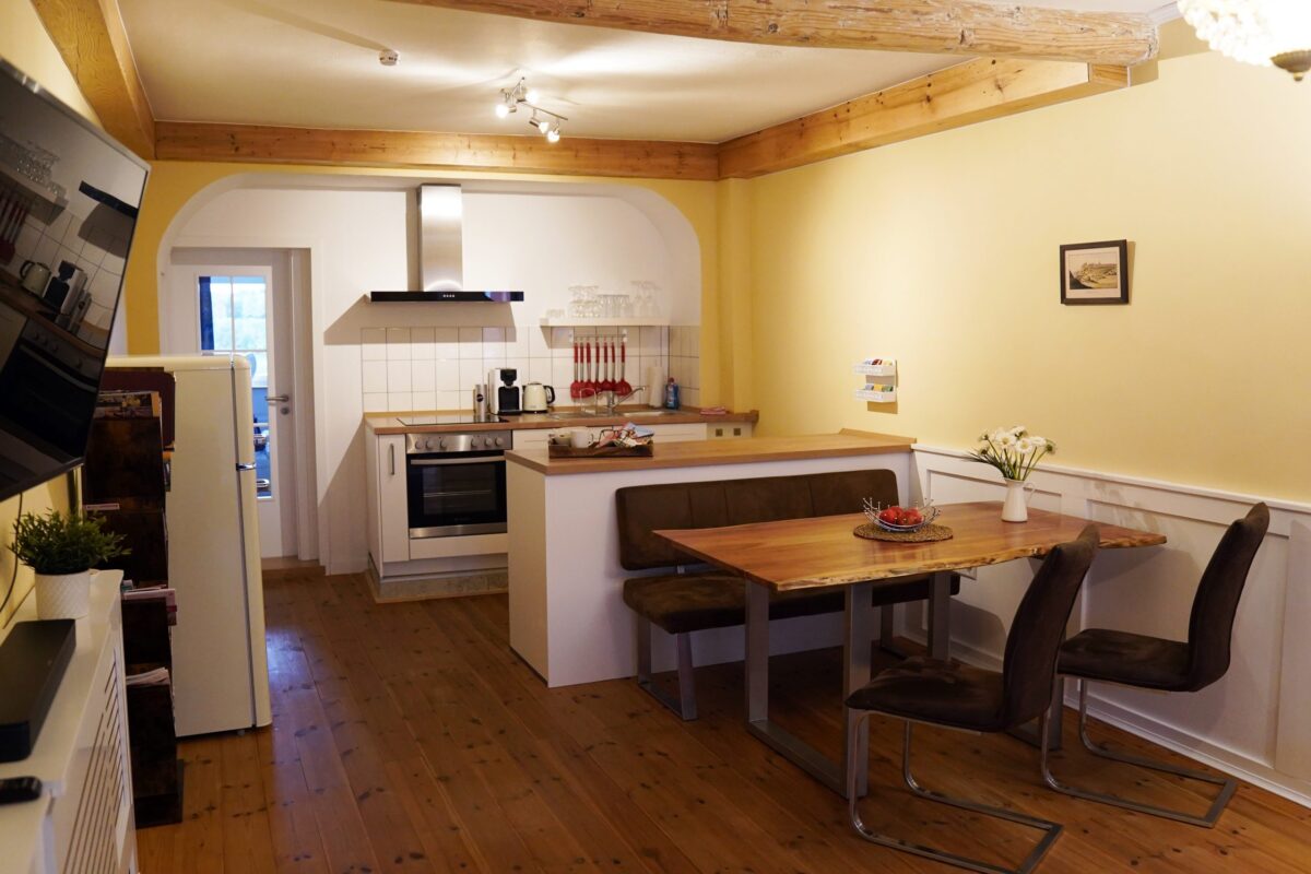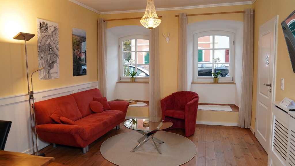 Die Ferienwohnung befindet sich im Erdgeschoss, direkt im historischen Ortskern: vorne Altstadt, hinten freier Talblick! Das Haus von 1749 steht unter Denkmalschutz und bietet eine gemütliche Mischung aus moderner Ausstattung und klassischer Gestaltung.