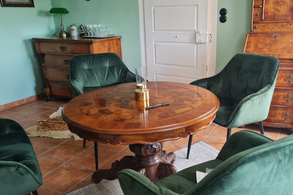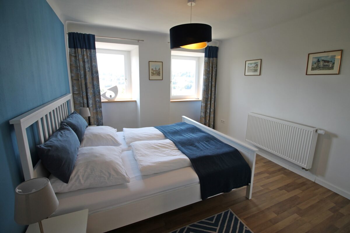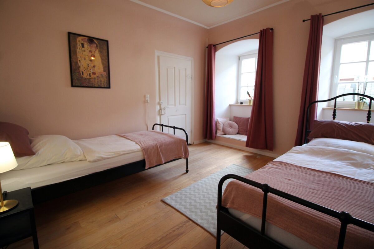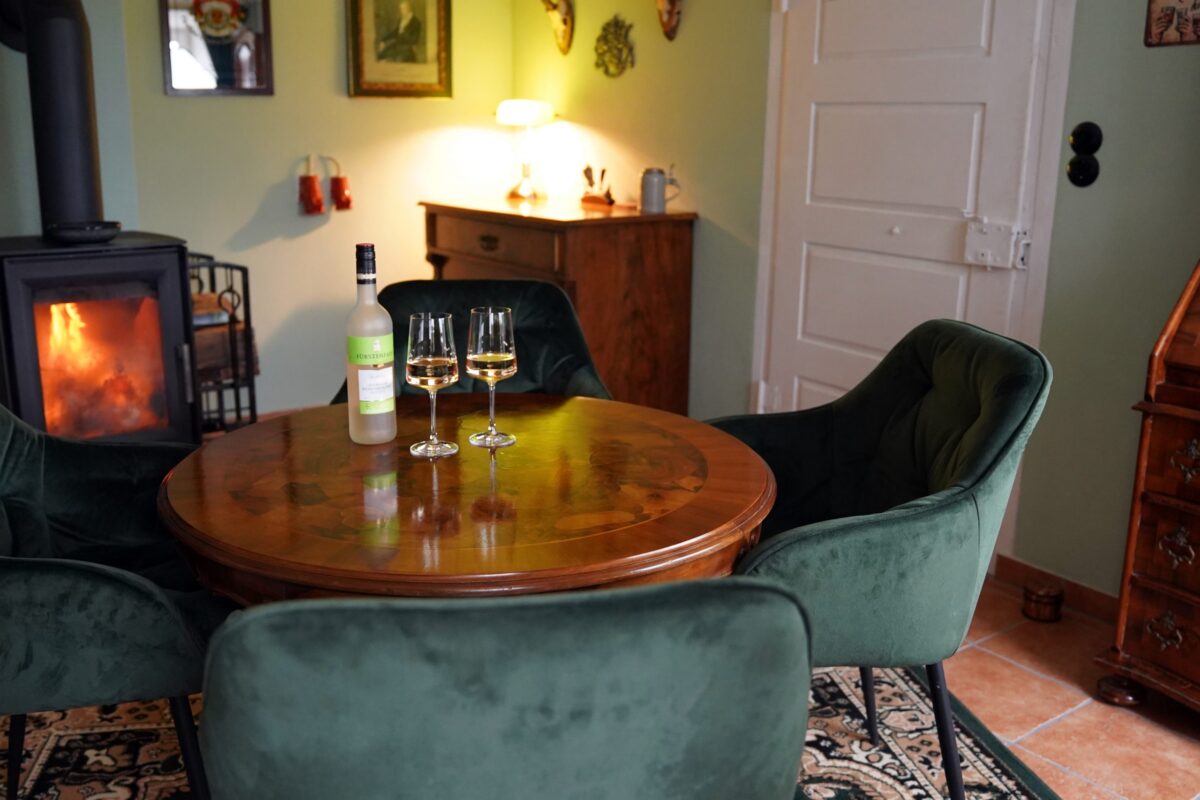 Die Wohnung mit etwa 90 qm ist weitestgehend barrierefrei und bietet Platz für 4 Personen. Da das gesamte Haus mit natürlichem Lehmputz renoviert wurde, hat es ein ganz besonders gutes Raumklima, die dicken Mauern halten die Wohnung im Sommer angenehm kühl.