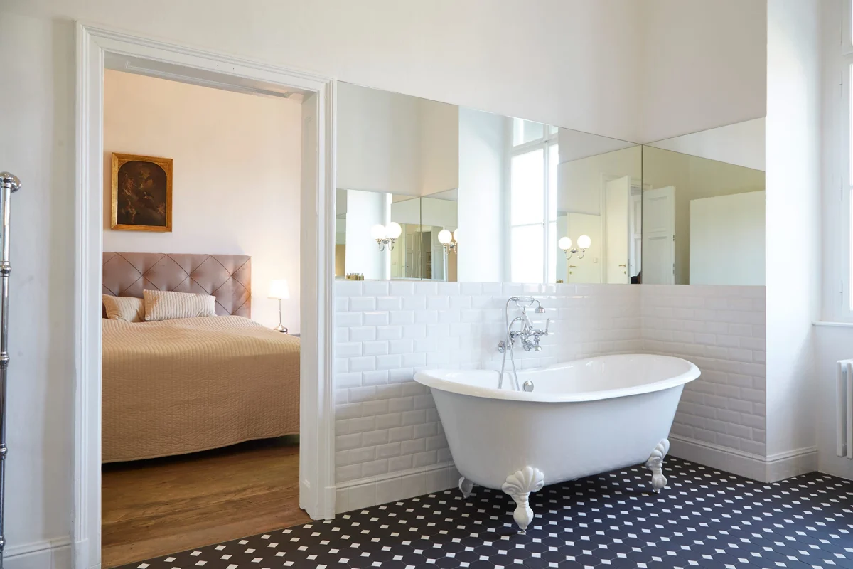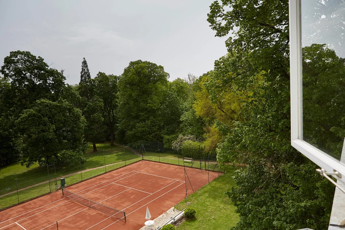Im neu sanierten Schlosstrakt steht das Luxusappartement mit 4 luxuriösen Suiten mit einer Top Ausstattung zur Verfügung. Jedes Zimmer verfügt über Boxspringbetten und ein eigenes Badezimmer mit freistehender Badewanne und Dusche. Zusätzlich steht im Trakt auch der Küchen- und Wohnbereich zur freien Verfügung. Die Benutzung des Schlossparks samt Tennisplatz erfolgt auf eigene Gefahr.