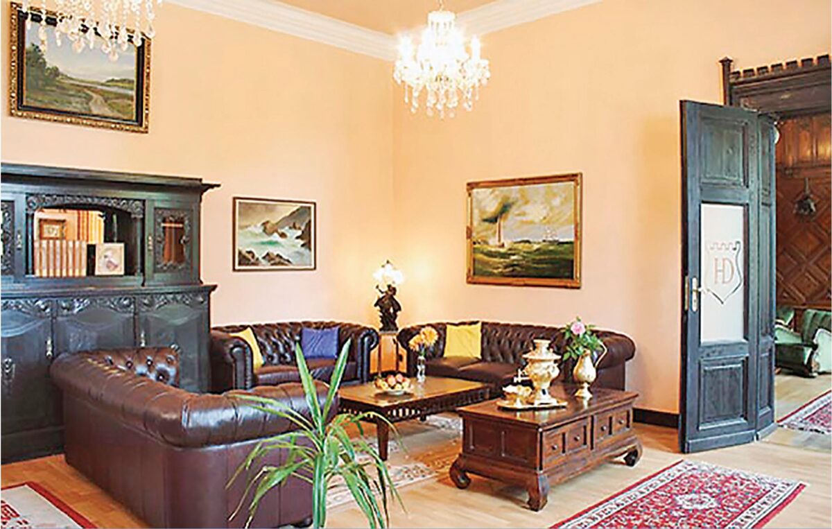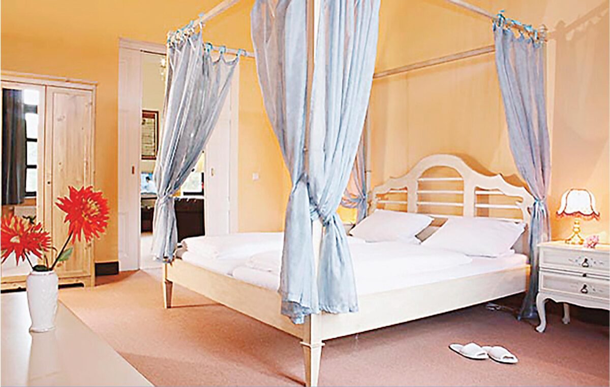 Schloss Poggelow liegt in der Mecklenburgischen Schweiz im gleichnamigen Dorf an einem schlosseigenen Teich. Von der überdeckten Terrasse aus haben Sie eine prachtvolle Aussicht bis hinunter zum Teich. Ein Grillplatz für schöne Abende im Garten oder ein kleines Hausboot mit Ruderboot auf dem Teich stehen Ihnen zur Verfügung und bieten Gelegenheiten für angenehme Stunden in der Natur. Gleich nebenan befindet sich eine Pferdekoppel mit Unterstand für bis zu 4 Pferden — Sie können also Ihre eigenen Pferde mitbringen.