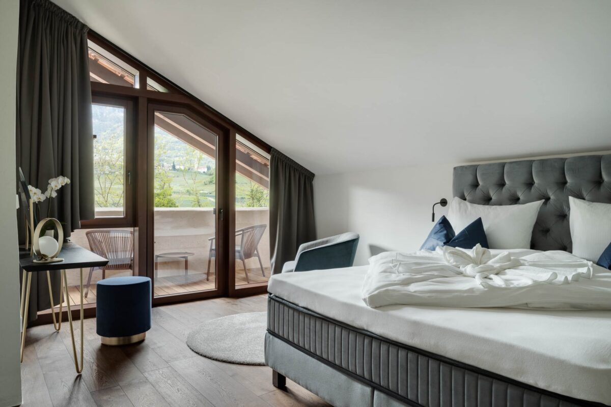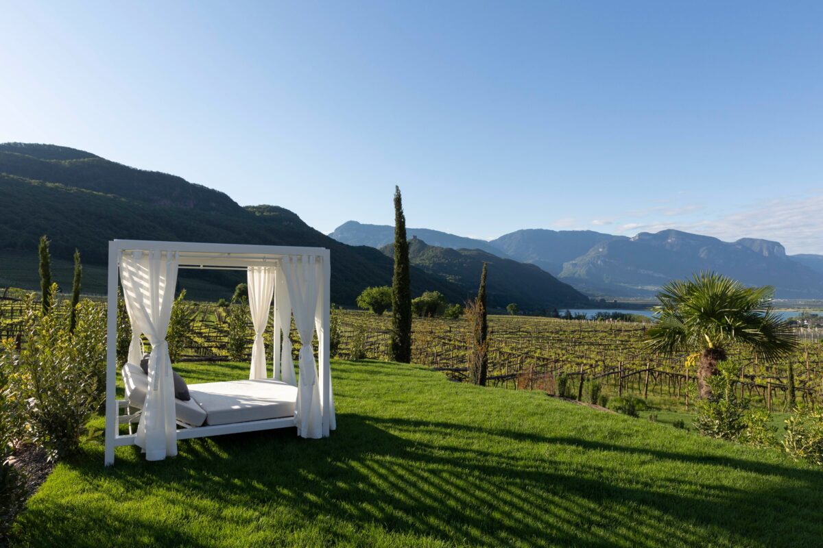 Eingebettet in ruhiger, mediterraner Lage – mit dem Kalterer See stets vor Augen – erwartet Sie in den Battisti-Suites ein Ort, an dem Stille und Weite spürbar werden. Keine Nachbarn, keine Hektik, Ruhe und Natur bestimmen den Tag. Ein Refugium für alle, die Exklusivität und Privatsphäre schätzen.