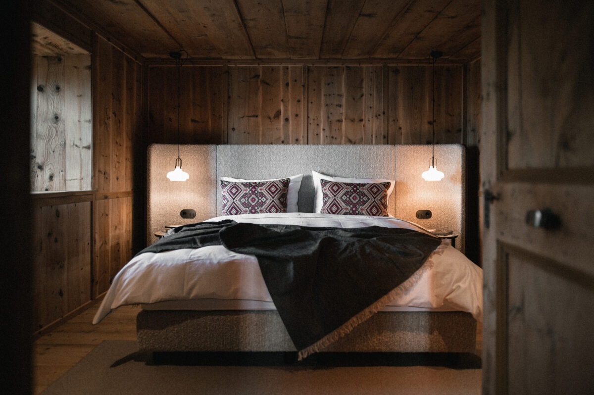 The lodge can be booked exclusively and can accommodate up to six guests. It is aimed at travellers who value privacy and seek authenticity – far away from hotels, close to nature, history and genuine mountain culture, whether they are couples, families or a group of friends.