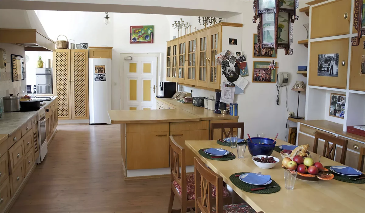 On the ground floor, you will find a small entrance hall, a large hall with an open fireplace, a vestibule, a cozy lounge and a sauna. On the first floor, there is a spacious salon, a summer breakfast room, a library with an open fireplace, a Chinese dining room, a vast kitchen and a hall for various occasions. The guest rooms are located on the second floor. Experience the charm and comfort of this historic castle and let its unique atmosphere enchant you.