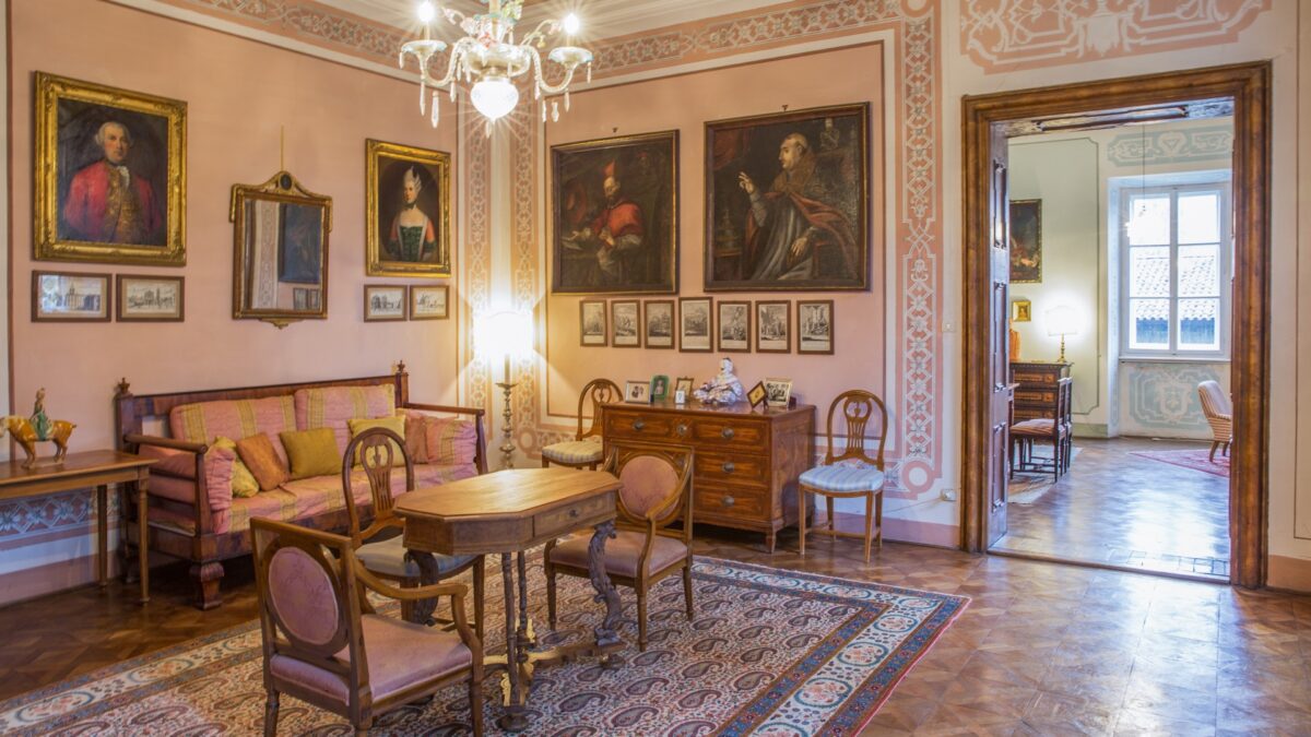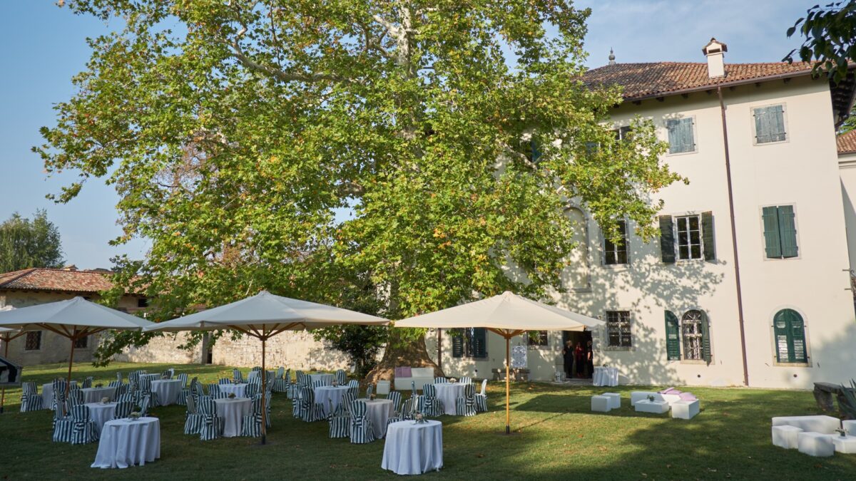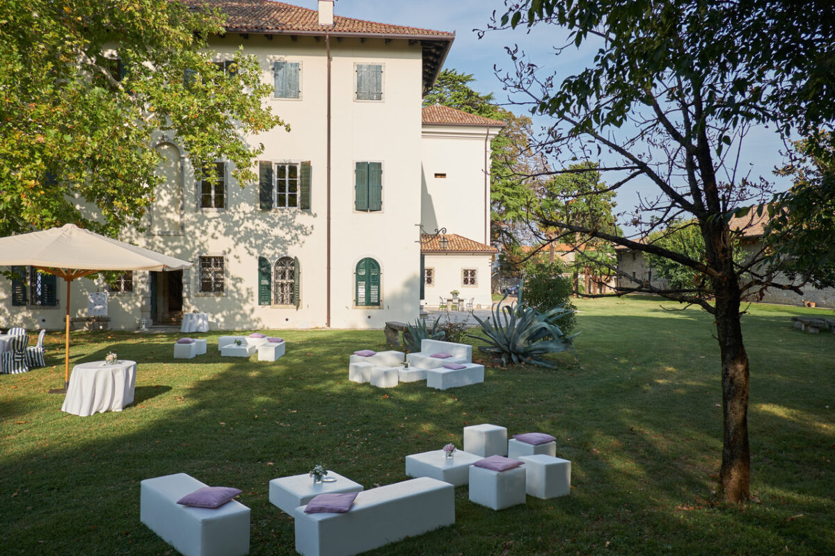 Our Villa Pace is located in the centre of the small village of Tapogliano in the Friulian plain, near a ford of the river Torre. The village is only a few kilometres from the Unesco sites of Palmanova and Aquileia (about 10 km from the A4 motorway exit) and a few kilometres from Ronchi dei Legionari airport. The villa is about 20 km from Grado, a historic beach of the Austro-Hungarian monarchy. The dominant villa stands isolated in the middle of the park, surrounded by a stone wall against which two barchesses (outbuildings) lean to the east and west. The large barchessa to the east is probably the only remaining part of the original ground plan from the end of the 16th century.
