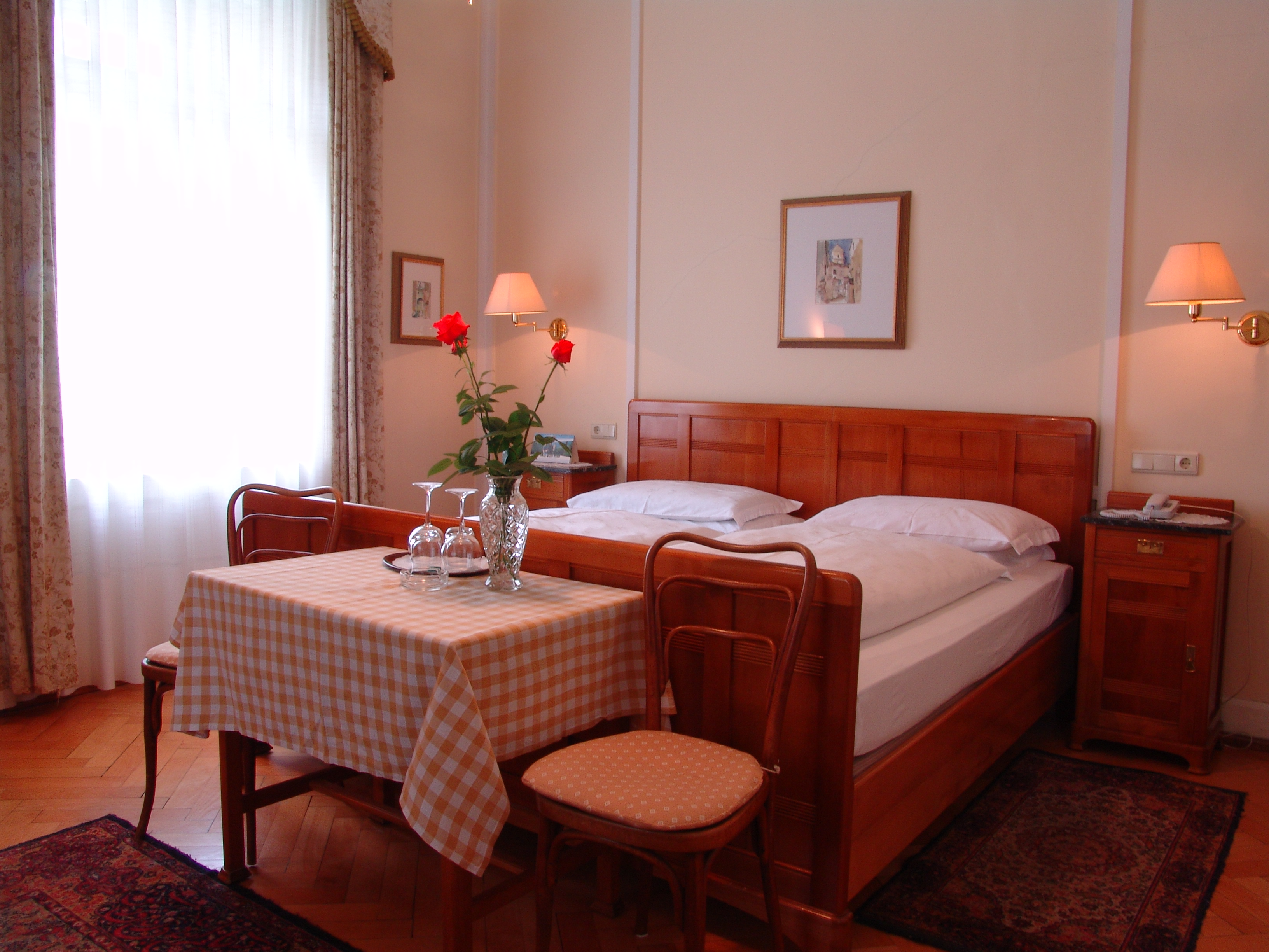 In the Hotel Villa Westend, built in 1890, one can feel a touch of bygone eras: high ceilings, antique parquet floors and some original "Art Nouveau" interior furnishings. Various pieces of furniture from the furniture factory J & J Herrmann, founded in 1878, can be found in the hotel rooms of the Westend. This world-famous furniture factory produced high-quality pieces based on artistic designs, including French and English styles, and participated in various exhibitions, including at the Austrian Museum of Art and Industry, now known as the MAK.